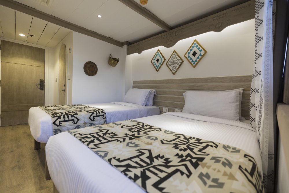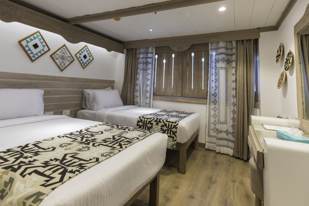 cruise that comes with four decks used for cabins and one sundeck.